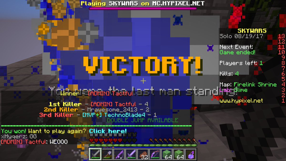 Slime mode in SkyWars Labs on Hypixel is amazing! I can actually win games nowpic.twitter.com/mCebHG0wxk
