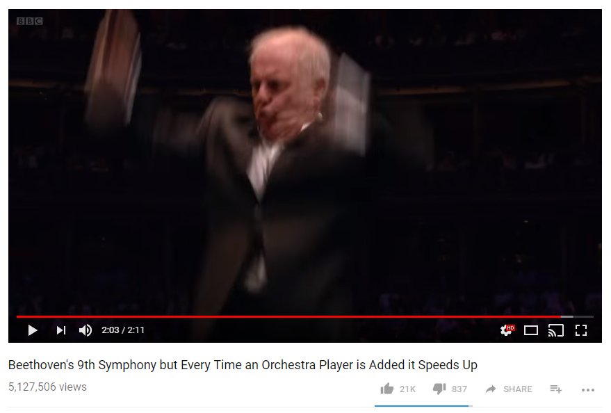Beethoven's 9th Symphony but Every Time an Orchestra Player is Added it Speeds Uphttps://twitter.com/dmataconis/status/917496578285490178 …