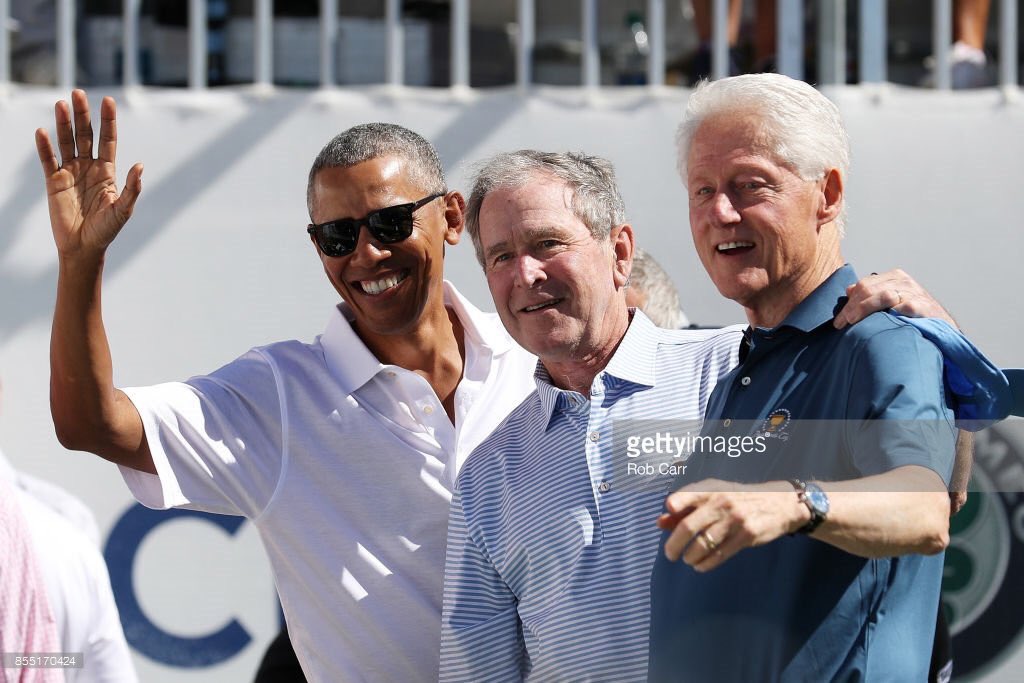 Presidents Obama, Bush and Clinton attend the Presidents Cup at Liberty National Golf Club.pic.twitter.com/KzS3Td5mFu
