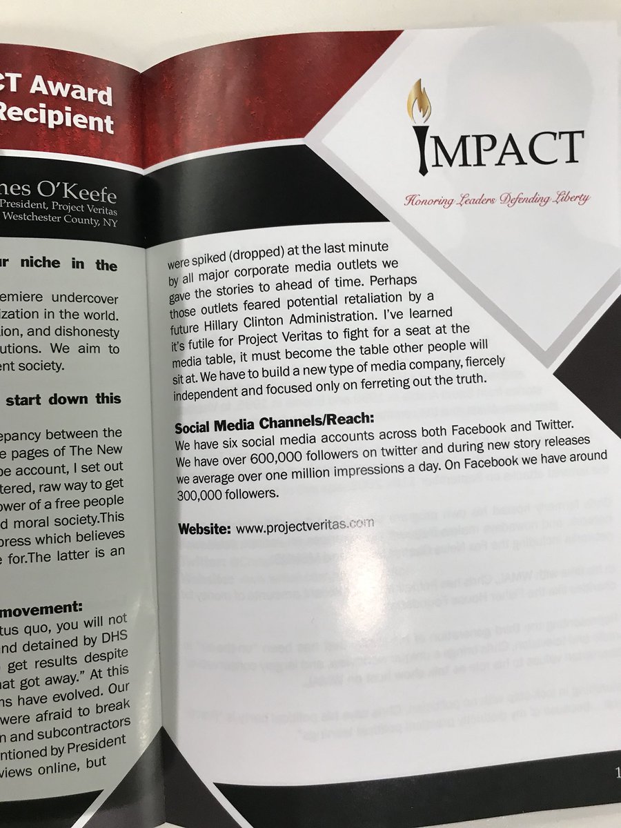 Here’s the program for the awards ceremony at @readonaldtrump’s DC hotel where James O’Keefe was honored for “defending liberty.” pic.twitter.com/TEyYGGbDZQ