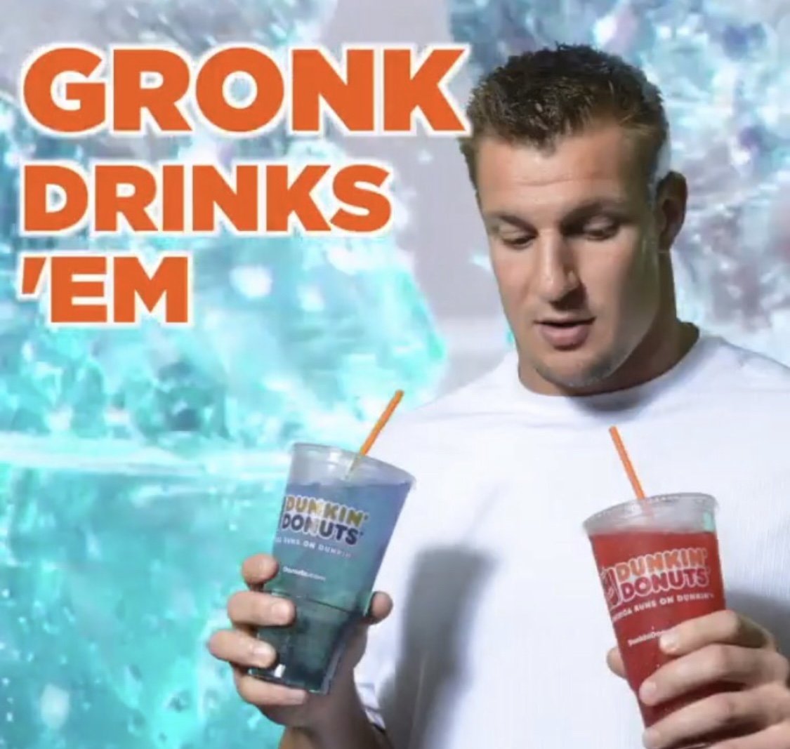 A while back, Dunkin Donuts used Rob Gronkowski in some ads. But my friend and I had no idea he was a football player, so we thought Dunkin came up with an Original Character named "Gronk" to advertise their energy drink.pic.twitter.com/CaAxbcu9mH