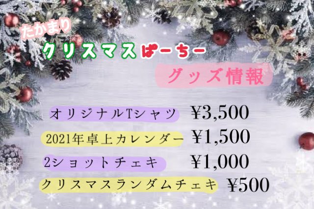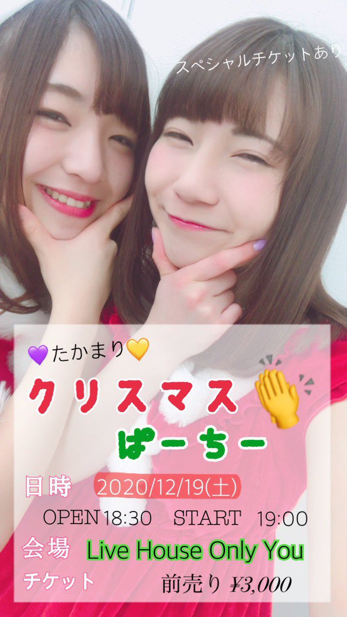 【情報解禁】 たかまり主催イベント 『クリスマスぱーちー』 2020/12/19(土) 【会場】Live House Only You 【時間】 OPEN 18:30/START 19:00 Ticketについては画像参照