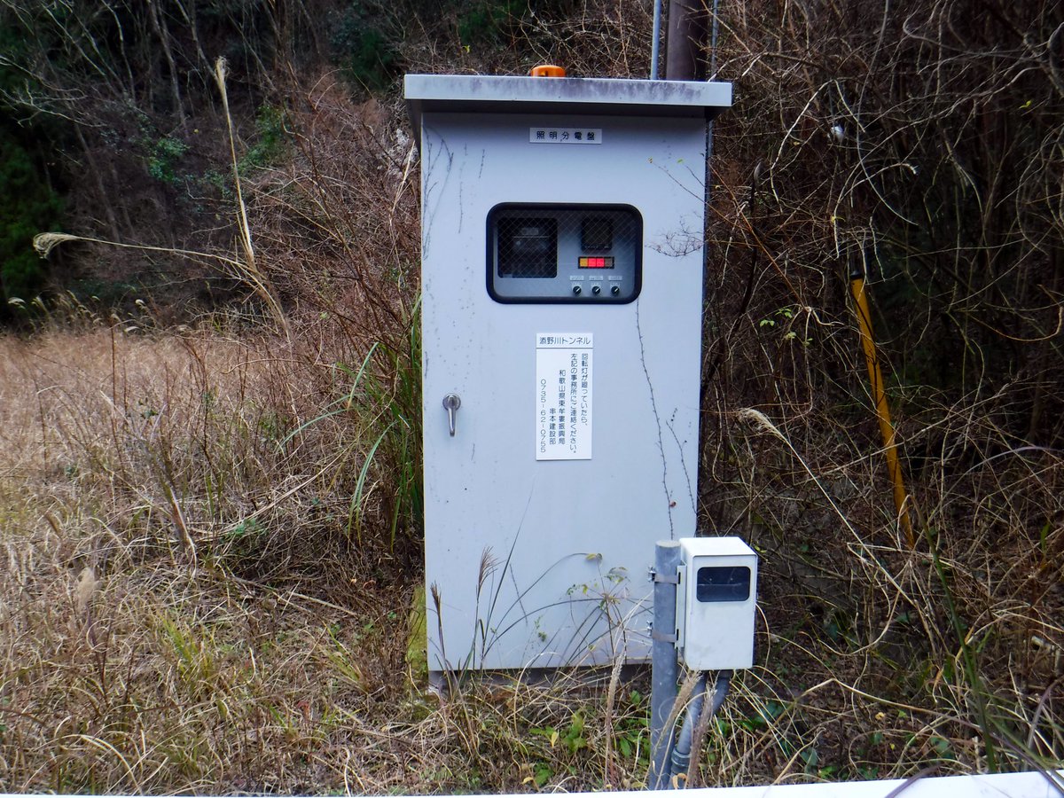 #なんの脈絡もない画像を貼って寝る トンネルの照明分電盤 手前の小さい箱はトンネルの入り口で通過車両を感知してトンネルの照明をつけるセンサー(長い