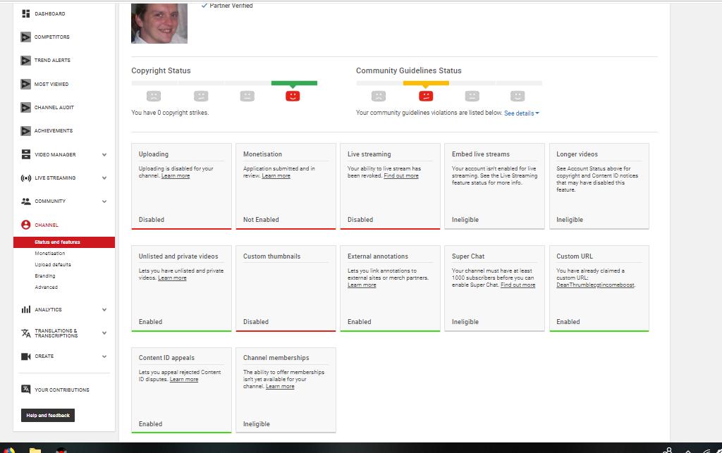 This is the status of my account right now after getting emails saying I am breaching community standards. I have not done anything with these videos for 2 years since I uploaded them Now I can't do anything with my channelpic.twitter.com/sE9nWyX5ZX