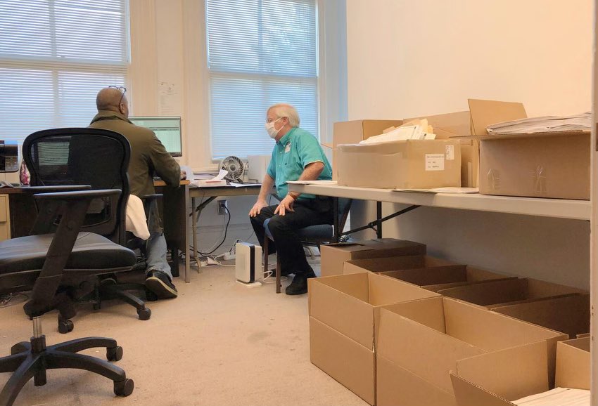 Picture of fired Floyd County Chief Election Clerk Robert Brady, & Dominion Rep Aric Thompson, taken by the Rome News Tribune from the morning after Election Day when the two were still scanning ballots. The recount unexplainably turned up 3055 uncounted ballots.