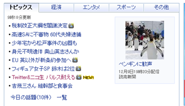 Yahooニュースのトップに「Twitter&ニコ生 バルス耐える」とかでてて吹いた.|http://yahoo.jp/Vb8eLy #yjfc_comics_and_animationpic.twitter.com/y6U7GlA3