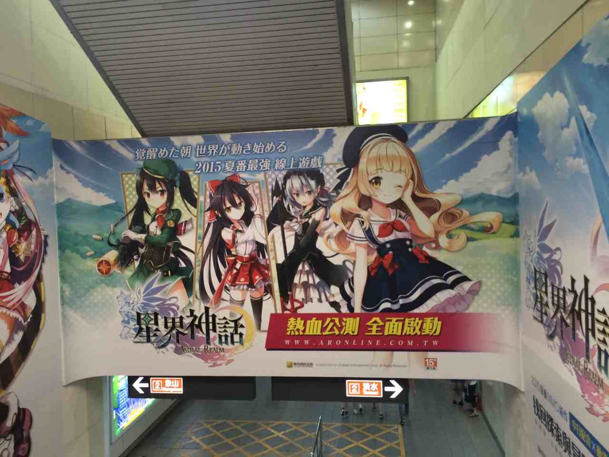 台北MRTなう。 高雄の時のポスターは無いみたいなんだけど、壁広告が派手だわ。ちなみに車内にも同広告がいっぱい。 pic.twitter.com/n7ytq26IYm