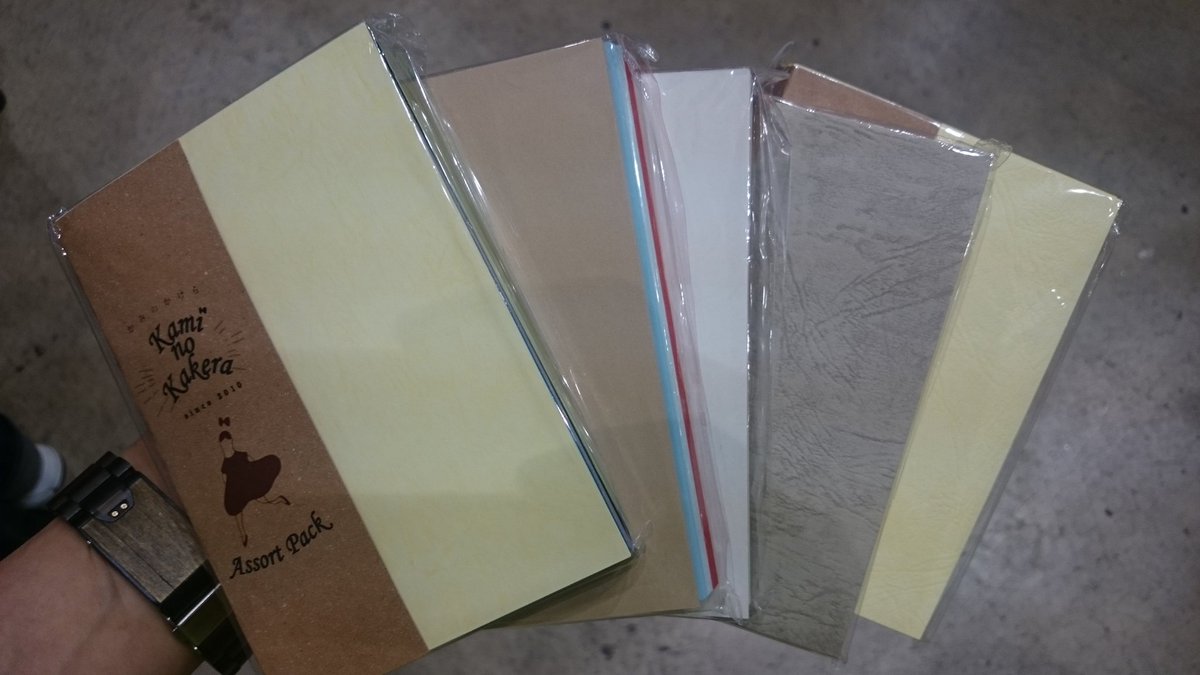 ハガキサイズの各種紙サンプルの束。