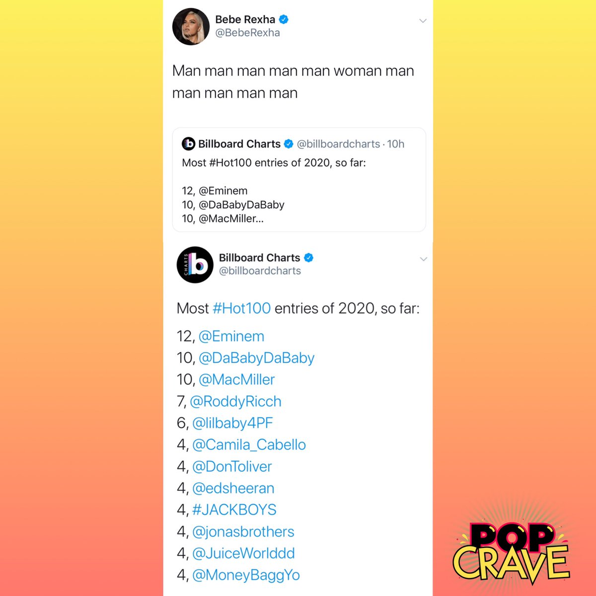 Bebe Rexha calls out the lack of female artists on the Hot 100 in 2020: “Don’t come to me saying women should make better music. They need to get fair playlist on streaming and radio.”pic.twitter.com/wFvSZc6Wbj