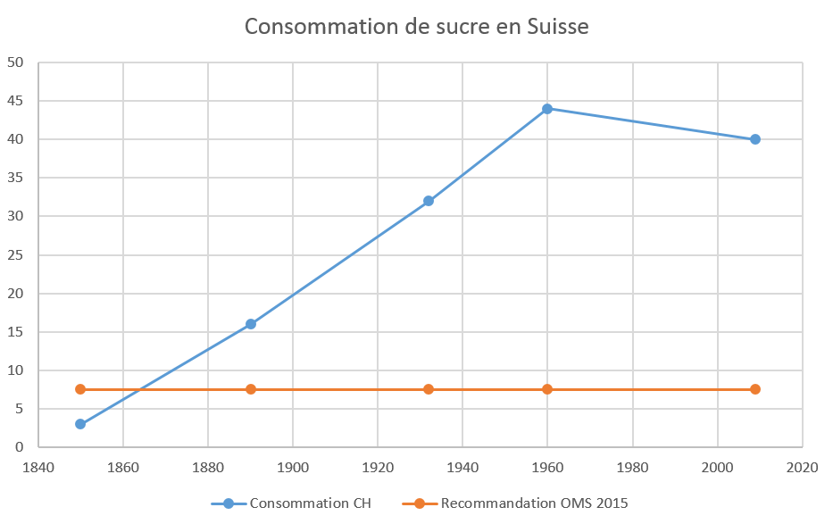 A propos du projet d'introduction d'une #taxe sur les boissons #sucrées: Évolution de la consommation de #sucre par personne en #suisse...https://twitter.com/polyscope_comm/status/663641045016645633 …