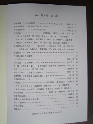 人工老人瞑い冷蔵庫の君臨/斎藤秀雄 近未来ダークファンタジーのようでいて昭和の私小説を想起させるような名詞のチョイスがまぶしい。各所をつなぐ撥音がこの句を呪文のような愛誦性へと読者を導く。繰り替えし読みたくなる句である。 We第8号
