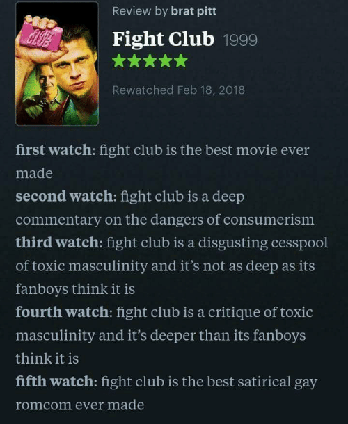 I see Fight Club is trending, which means it's time to repost my favorite thing said about it.pic.twitter.com/DpD42Vmtis