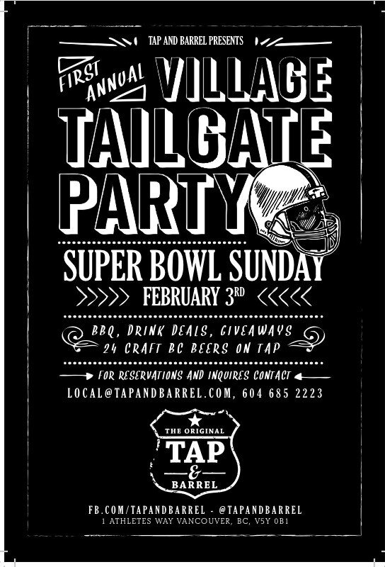 Our top local pick for Super Bowl action? The 1st annual Village tailgate party #inthevillage @tapandbarrelpic.twitter.com/cmfEx5Cx