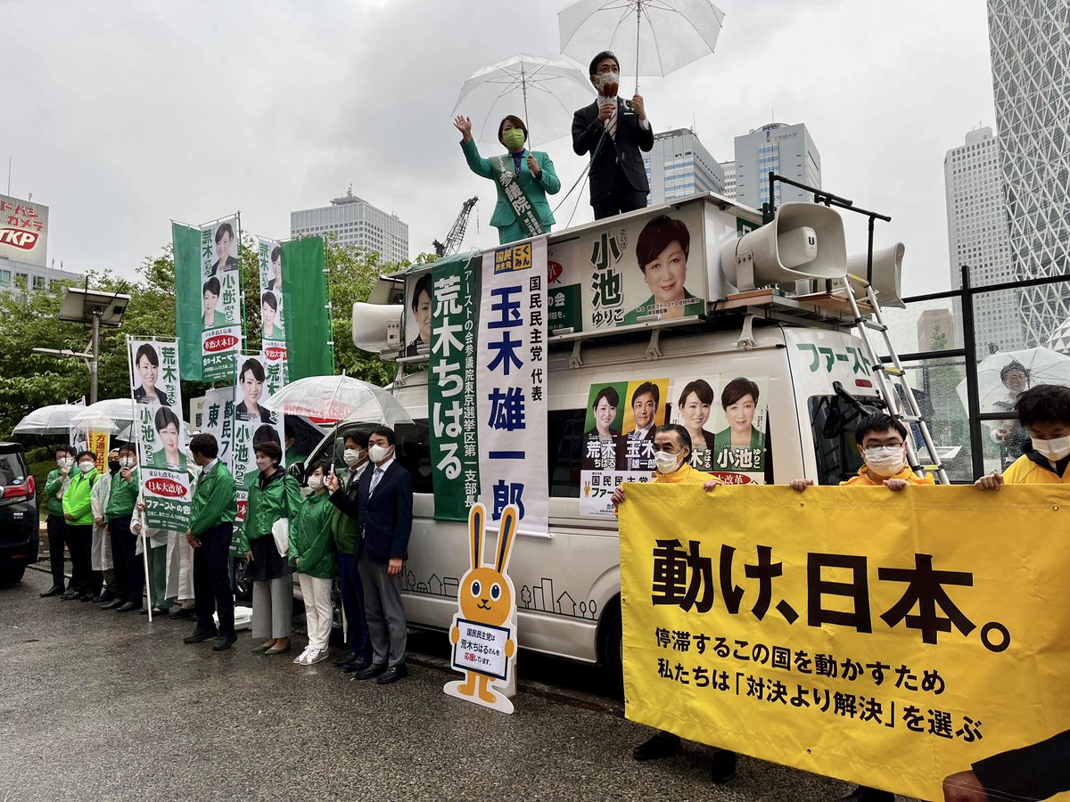 ファーストの会と国民民主党との合同演説会を新宿駅西口で開催させて頂きました。変化の早いこの時代に、変化出来ない政治ではいけない。新しい日本を東京から作っていく。そんな想いを荒木ちはるファーストの会代表、玉木雄一郎国民民主党代表から訴えさせて頂きました。 雨の中お集まり頂き感謝ですpic.twitter.com/XBexAu6Zp0