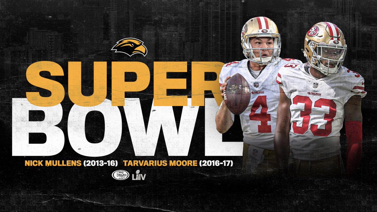 @49ers fans on Sunday! Best of luck to Southern Miss alumni@NickMullens and Tarvarius Moore,@tarvarius2, in Super Bowl LIV! Be on the lookout for the newest USM commercial airing regionally during Super Bowl programming.#SMTTT!https://bit.ly/2tBmws5Hvala. Twitter će to iskoristiti za poboljšanje vaše vremenske crte. PoništiPoništi -