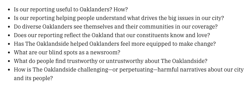 @Oaklandside—a few key questions about how our journalism resonates with them:pic.twitter.com/KzaUVZgOBJ