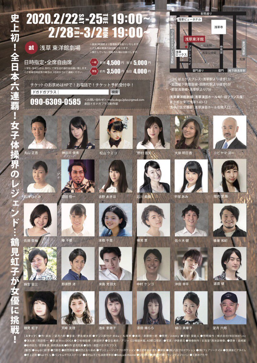 公演情報② チケット 一般:3300円 25歳以下:2500円(身分証をご提示ください) 小・中学生:1000円 幼児:500円 3歳未満:無料 出演 乙幡綾香(ESLシアタープロジェクト) 北内花実(海賊のように飲む会) 小林徳世 福谷智子 古河麻理絵 松浦志帆 水上祐佳 KEYsiDE 伊藤辰哉(Pf)宮野下シリュウ(Mar)