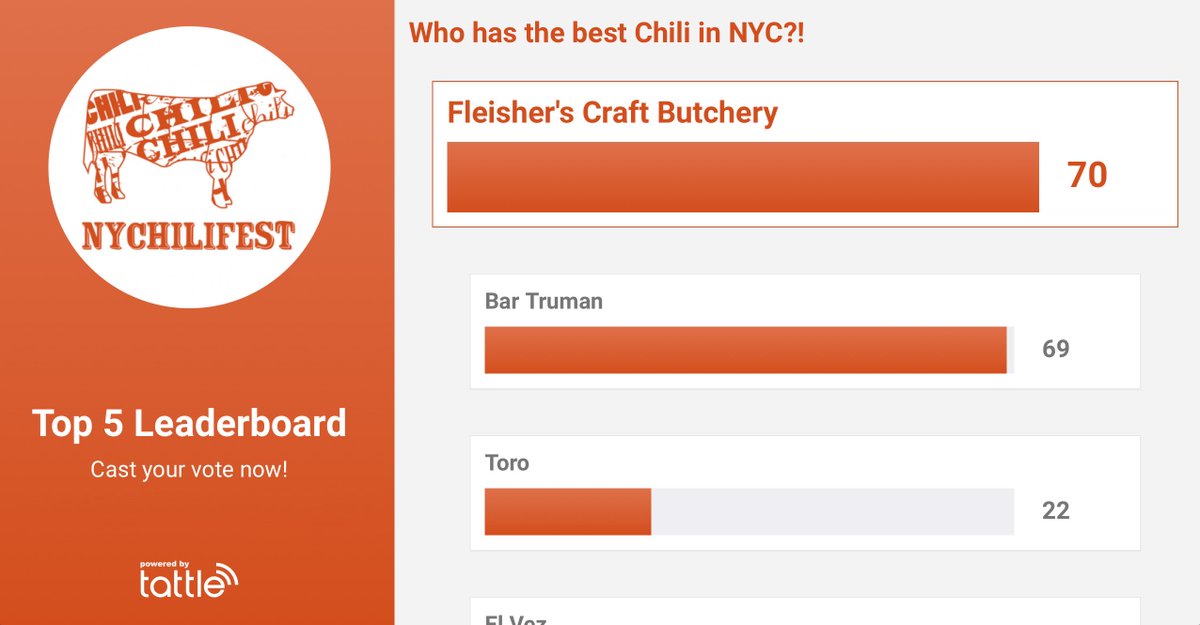 #chilifest Leaderboard powered by@gettattle - cast your vote now at@ChelseaMarketNYpic.twitter.com/iHi0lJTetY
