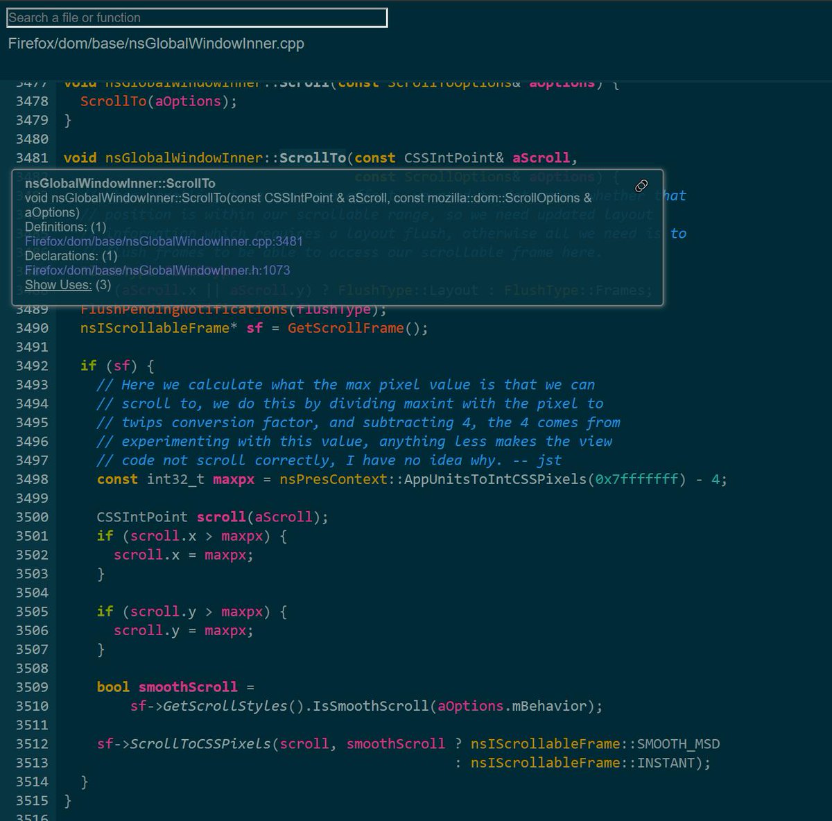 This week I discovered the @woboq code-browser thanks to @elvanderb. I tried it on Firefox's code-base and I have been using it for the whole week as it works so well. Go try it out! And if you needed some convincing, here is the Firefox mirror: …http://ff-woboq.s3-website-us-west-2.amazonaws.com pic.twitter.com/bCXrevyzPe