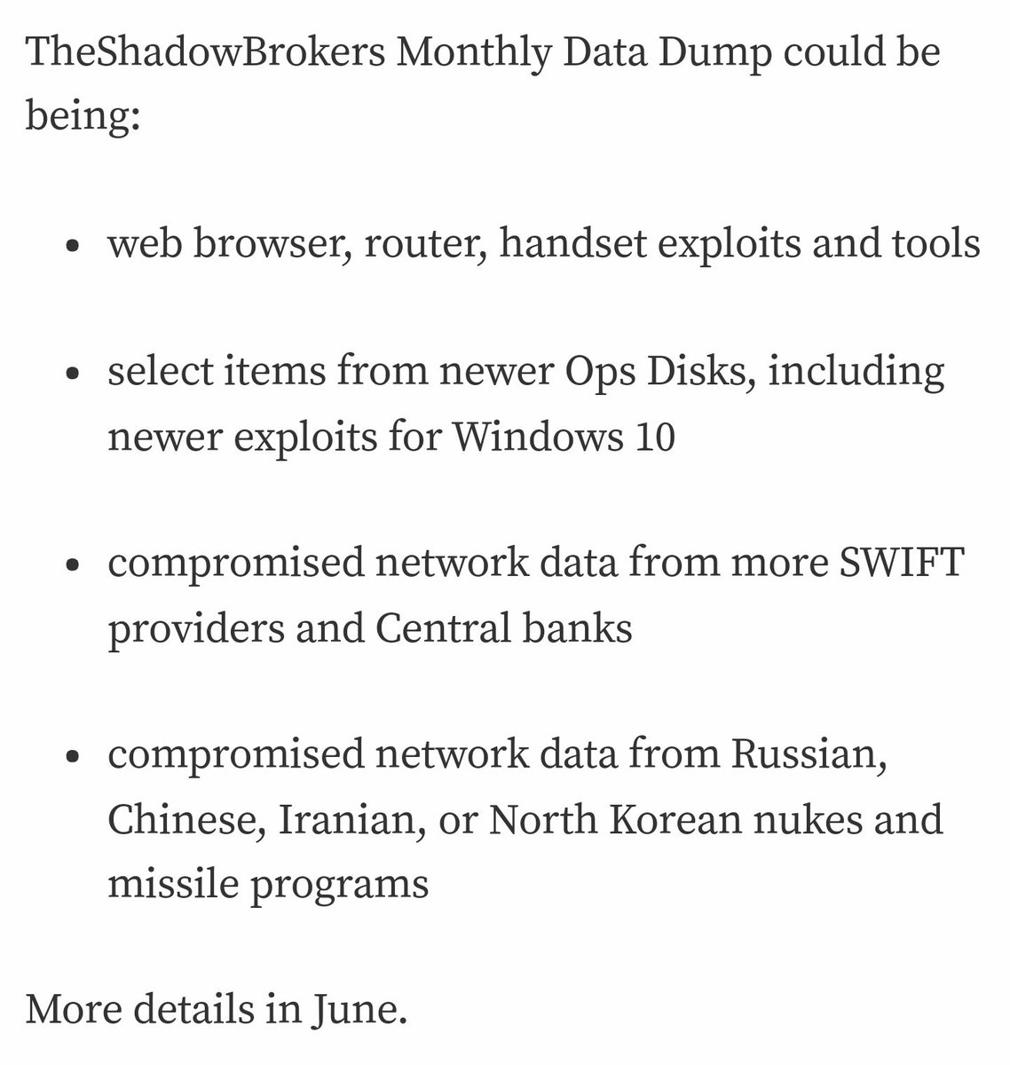 #ShadowBrokers release '8th grade level' statement.