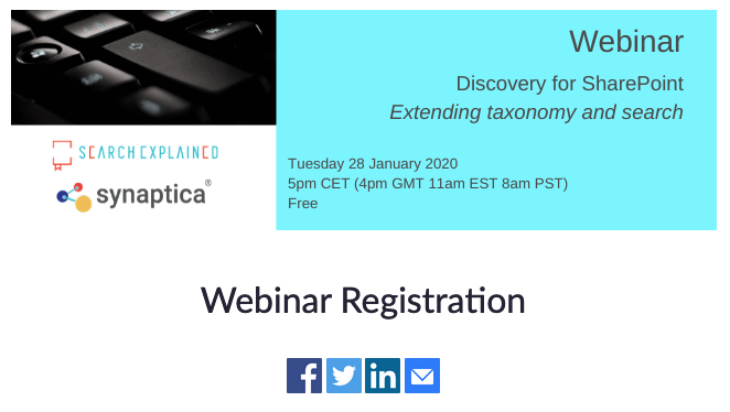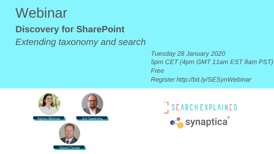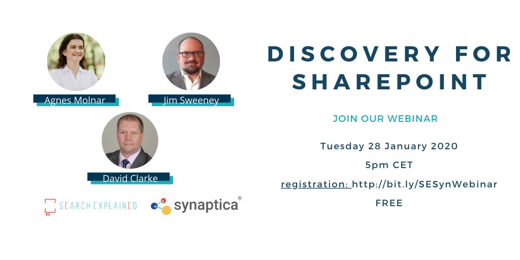 @Synaptica and@SearchExplained Webinar about a killer app that eliminates common pain points with search, browse and tag in@SharePoint. Join Jim Sweeney, Agnes Molnar and me on Jan 28th - Free registration at https://zoom.us/webinar/register/WN_gUmNU5ZFRpeQlPq0y1YkQw?__s=s226stbmja1v8s5w2d63&utm_source=drip&utm_medium=email&utm_campaign=Webinar+with+Synaptica+%7C+Exploring+Discovery+for+SharePoint …pic.twitter.com/f92TF6cqVL