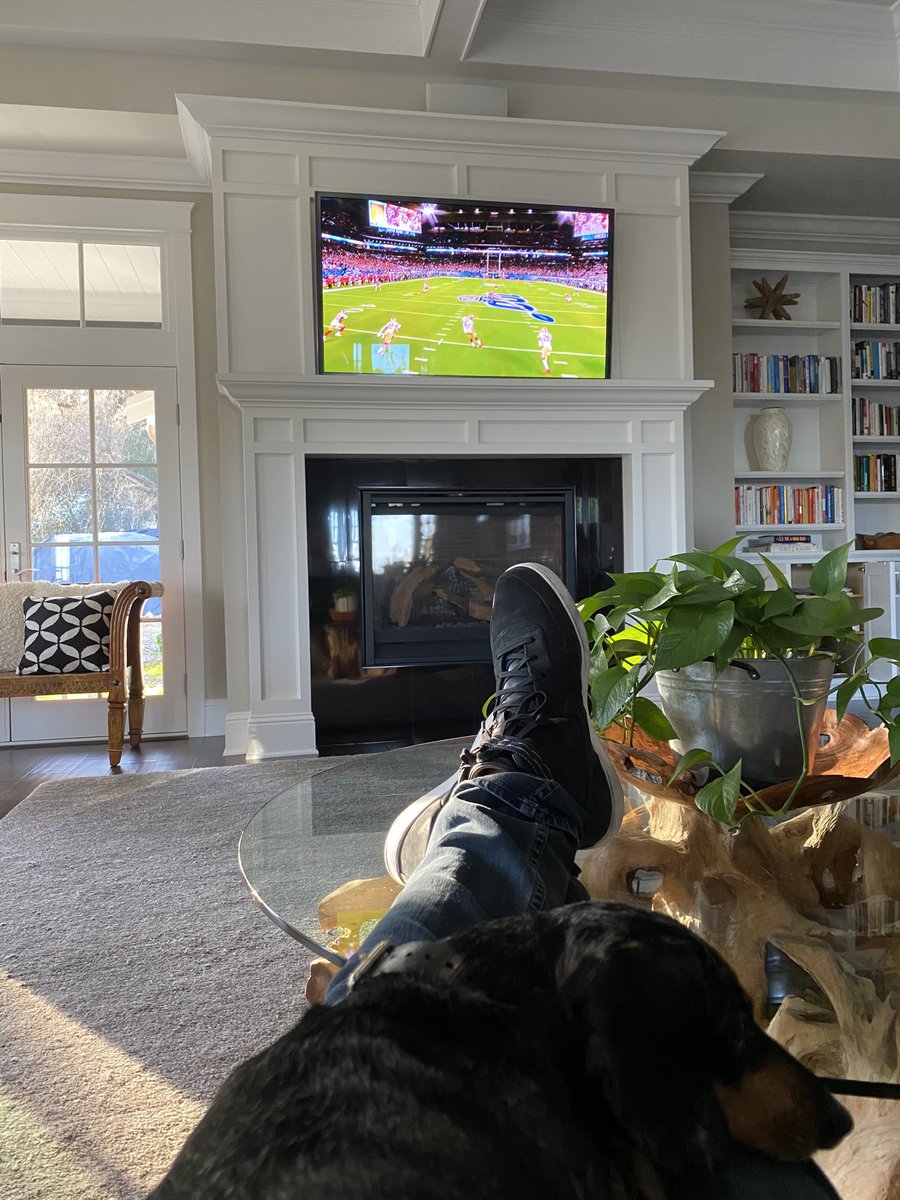 Dog not so interested in the kickoff but we are ready to go! Go Niners!