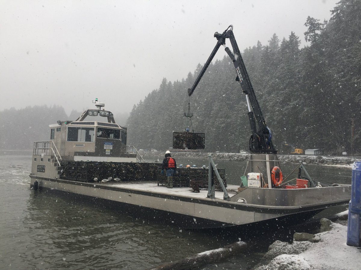 A snowy day in Samish! Working hard to get our oysters to our customers.