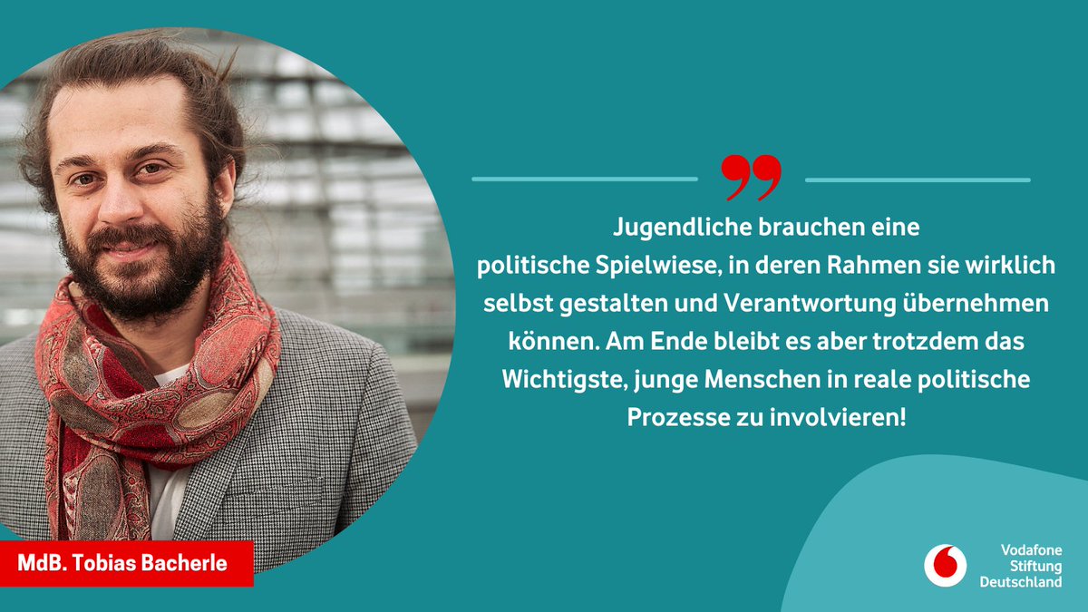 @TBBacherle (@Die_Gruenen) findet, es sei “das Wichtigste, junge Menschen in reale politische Prozesse zu involvieren". Unsere#Jugendstudie zeigt: 54% der jungen Menschen wünschen sich mehr junge Politiker:innen und 41% einen bundesweiten Jugendrat.