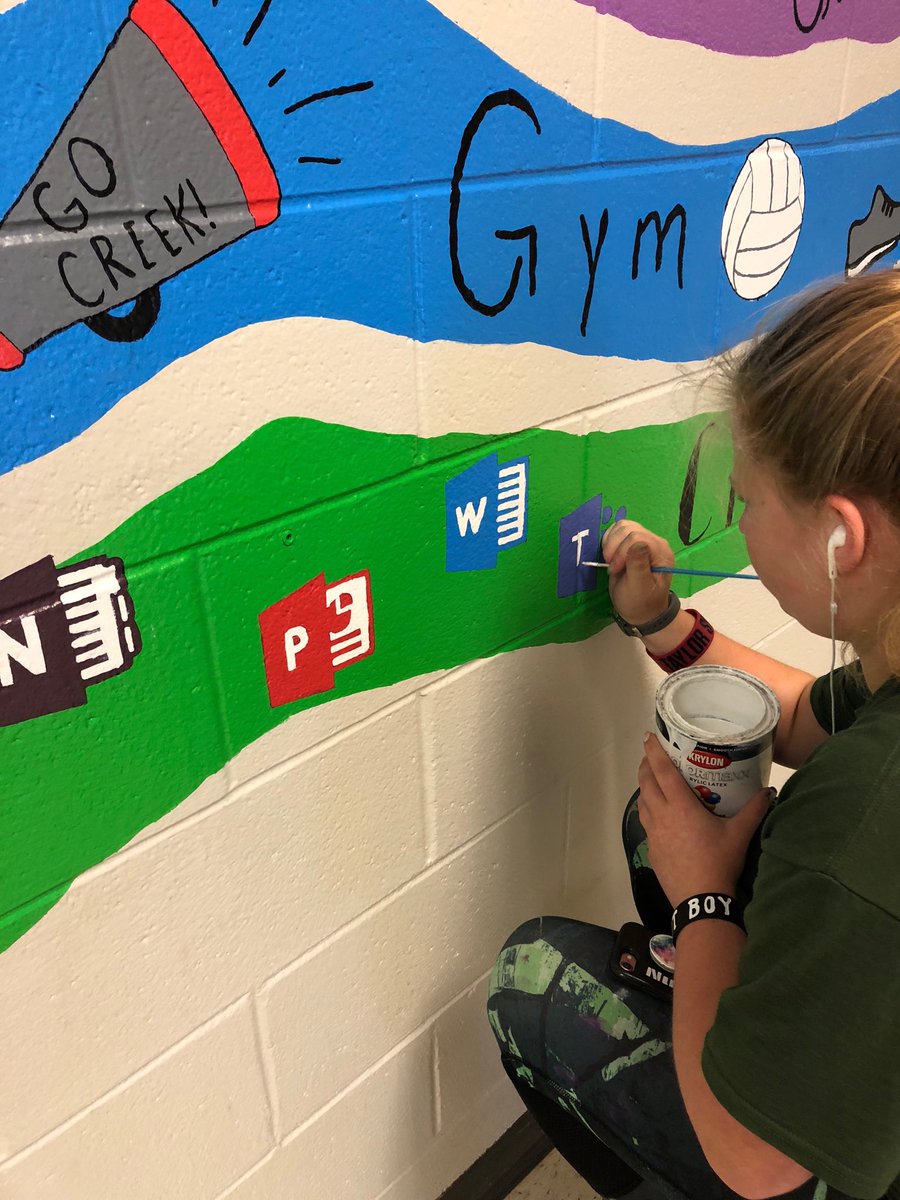 Karley is putting the final touches on the student created mural