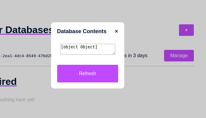 an e p h e m e r a l database provider A cute idea in a group chat turned into a 2-week side project with
