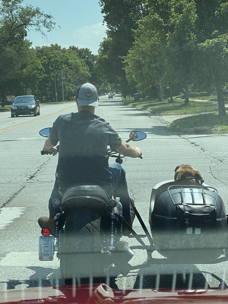 While driving in downtown Lawrence KS (LFK) I spotted this bike with a sidecar and a dog with goggles on. So cute. So Lawrence.pic.twitter.com/7hhIQc2W4Y