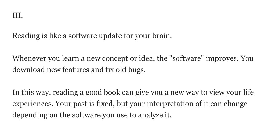 Idea adoption is so personal it blows my mind. The number of times I've first clicked on a blog, then closed the tab thinking its stupid, only to rediscover it and fall in love with it 6 months later is crazy. Twice a year I become a different person.