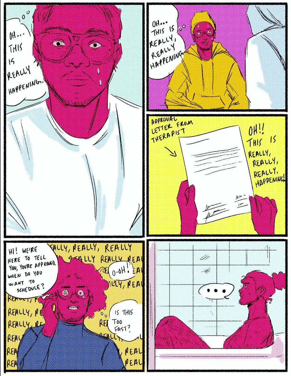 I got Top Surgery Yesterday (1/28) !!;; I didn't get a chance to post my comic yesterday, due to getting ready for it but, here's a comic I made about all of my personal feelings and journey towards Top Surgery. It's a big step and I'm glad I took it! Part 1/4 of comic threadpic.twitter.com/5svhIVeW9K