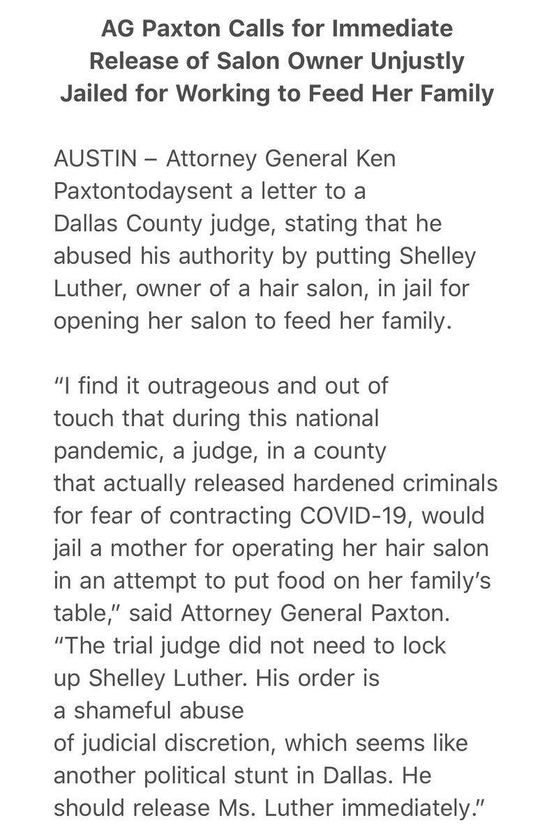 The Texas Governor needs to issue an immediate and full pardon for Ms. Luther.