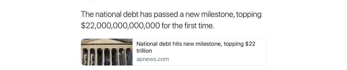 @tedcruz The national debt has passed a new milestone, topping $22 trillion for the first time.............(that's trillion with a T)Thanks. Twitter will use this to make your timeline better. UndoUndo