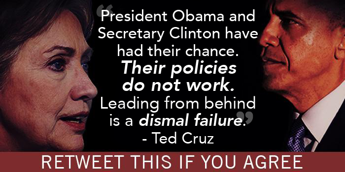 @tedcruz Exactly what do you call policies that want to "take us back" but leading from behind Teddy?Thanks. Twitter will use this to make your timeline better. UndoUndo