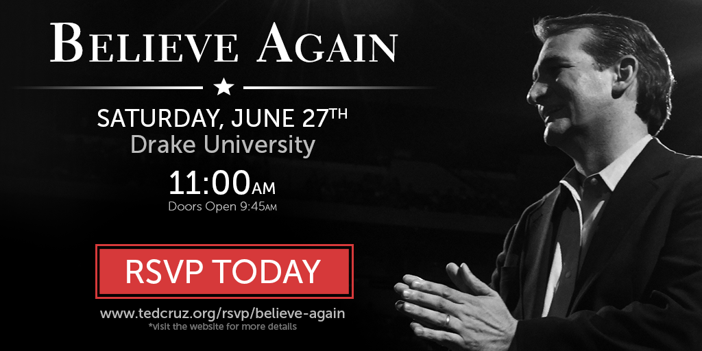 @tedcruz Very excited to attend! My weekend just became#Amazing! Looking foward to#BelieveAgain#TedCruz #45Thanks. Twitter will use this to make your timeline better. UndoUndo