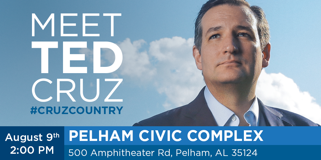 Join us in Pelham https://www.eventbrite.com/e/pelham-al-southern-reception-meet-greet-with-ted-cruz-shelby-co-gop-tickets-17981830138 … or Huntsville https://www.eventbrite.com/e/huntsville-al-ice-cream-town-hall-with-ted-cruz-congressman-mo-brooks-tickets-17981773970 … tomorrow! http://tedcruz.org/cruzcountry pic.twitter.com/id8RTIdMp6