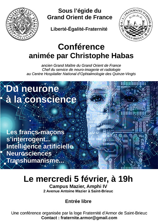 Du neurone à la conscience. Conférence, organisée par la Loge Fraternité d'Armor, de Christophe HABAS, ancien Grand Maître du