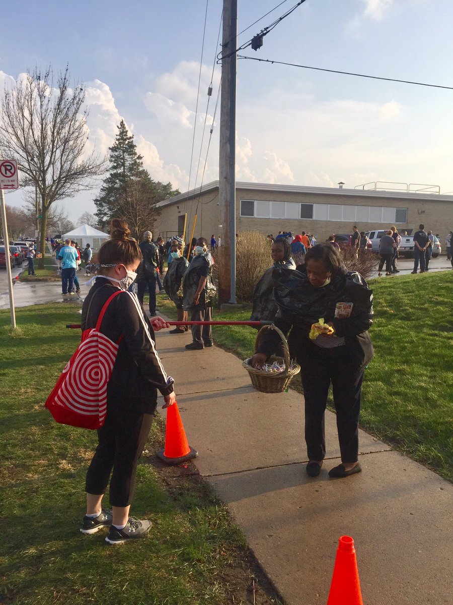 As it gets to be dinnertime here, a woman is walking around handing out free McDonald’s cheeseburgers, and a BBQ truck has parked across the street from this polling location (Marshall High School).pic.twitter.com/FVI22pfJ9O