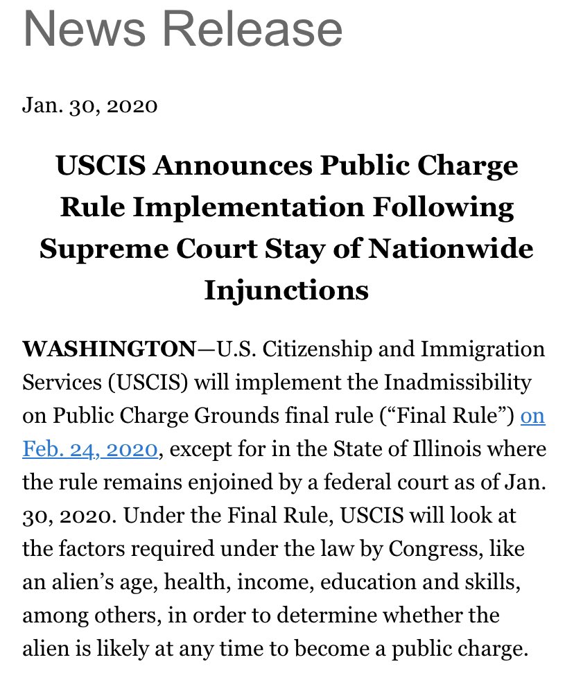 USCIS announced tonight that it will begin implementing its public charge regulation on Feb. 24. The rule allows federal officials to deny green cards to legal immigrants who have received certain public benefits or who are deemed likely to do so in the futurepic.twitter.com/oXCe9Lk2Gv