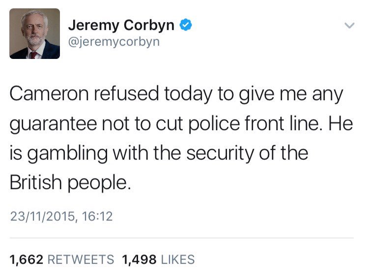 Jeremy Corbyn warned about Tory cuts to the police being a threat to national security back in 2015!