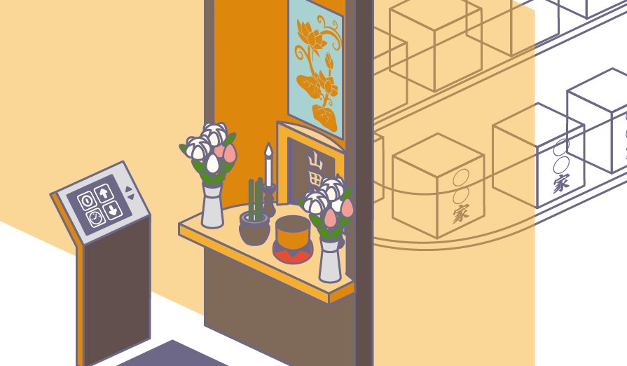今日新知:原来日本很多由寺院经营的墓地内部已经机械化了,叫做“自動搬送式納骨堂”,扫墓祭祖时进门刷个卡,地下类似立体停车库一样的装置就咔咔咔运动起来,用机械臂、传送带把骨灰盒运到指定的佛龛里,方便亲人祭扫。满满的灵界赛博朋克感。pic.twitter.com/33bhLdlsL3