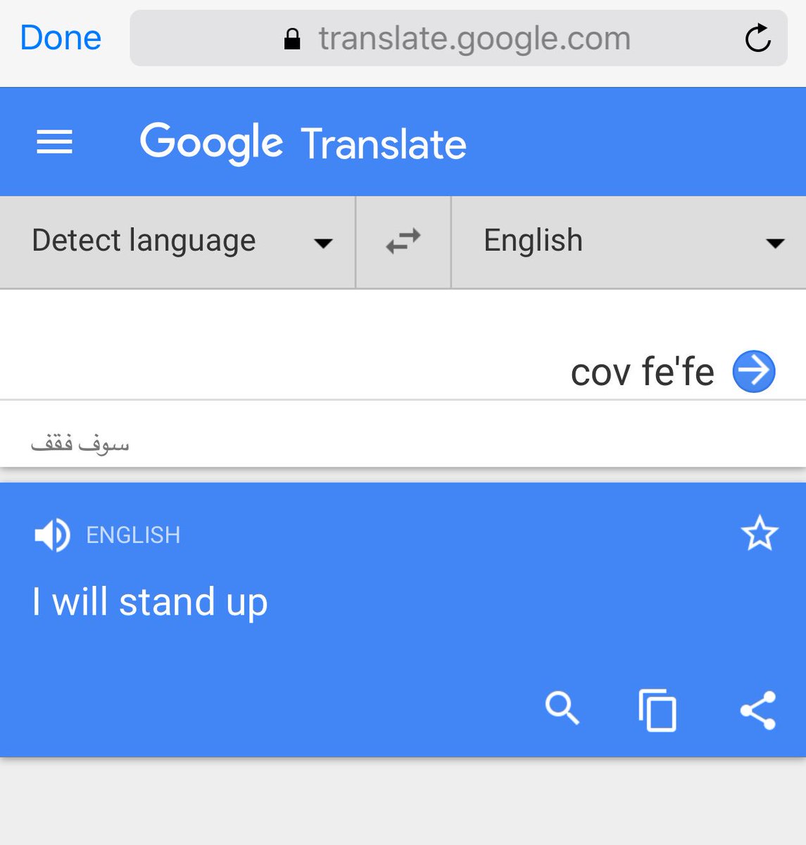 @realDonaldTrump just trolled everyone into repeating the "misspelled tweet" all day.#Covfefe = Arabic for "I will stand up!"pic.twitter.com/yTxQuzXHQS