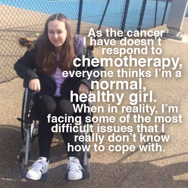"The cancer I have doesn't respond to chemotherapy so everyone thinks I'm a normal, healthy girl. In reality I'm facing some of the most difficult issues that I don't know how to cope with. Teens Unite made me feel like I belong somewhere."