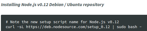 Installing Node.js... step 1: curl | sudo bash - SAY WHAT? IS THIS A JOKE?pic.twitter.com/kh9DykVRZJ