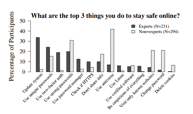 Great graph of security practice differences between experts and non-experts.pic.twitter.com/k0z0ZDEZrP