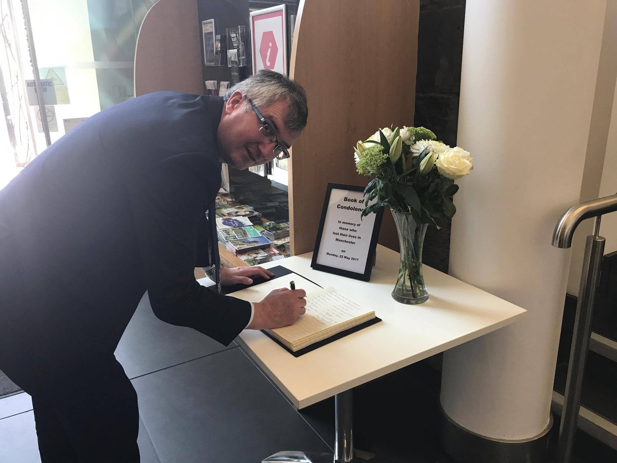 Signed book of condolence at Ranfurley House, Dungannon in memory of all those affected by the barbaric Manchester terror attackpic.twitter.com/1z9tJ8tsyj
