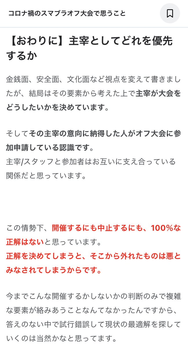 オフ大会は参加者一人一人の合意で成り立つという部分に激しく同意です。開催是非に限らずルール系全部そうだと思います。 是非全文読んでください https://twitter.com/kiba_ssbm/status/1423693304219070467 …pic.twitter.com/erUu1gTay3