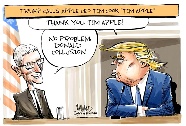 Has anybody asked the question why Tim Apple at this point in Trump doing a million and one horrible things, and yet Tim is there sucking up to him? At this point I wouldn't force a janitor from the company to go there. If he wants to shade Trump send a cardboard cutout of him.